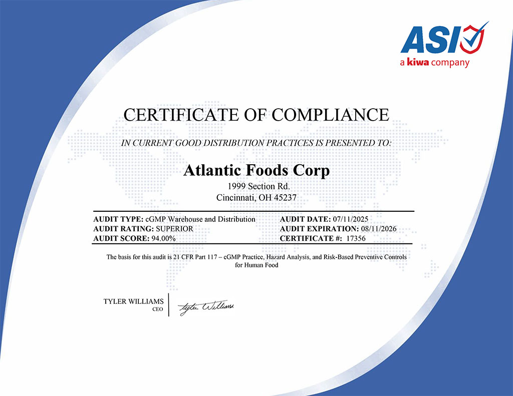 Atlantic Foods Corp - 2025 Certificate - CGMP Warehouse And Distribution - 07.11.2025
